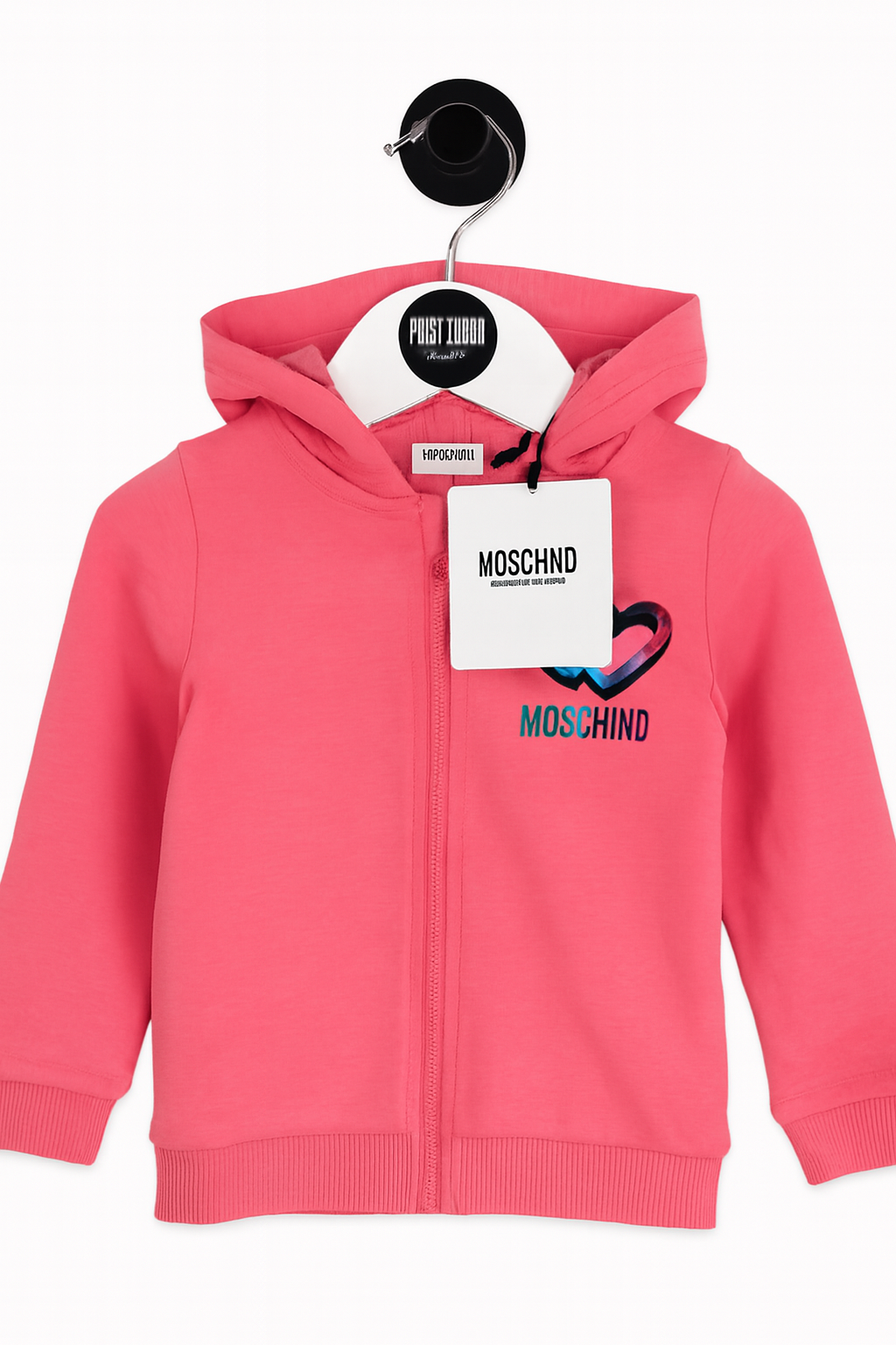 Moschino baby girls hoodies Pamper your little princess with our Moschino baby girls hoodies! Made with high quality materials, our hoodies are both durable and stylish. Perfect for keeping your baby warm and trendy. Available in sizes 12-18m. Treat your baby to luxury with Moschino.