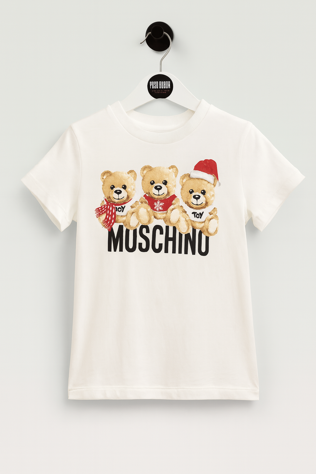 Enhance your child's wardrobe with this Moschino Christmas t-shirt in a size 5-6y. Made with high-quality materials, the shirt features a festive holiday design that will make your child stand out. The perfect combination of style and comfort for the holiday season.