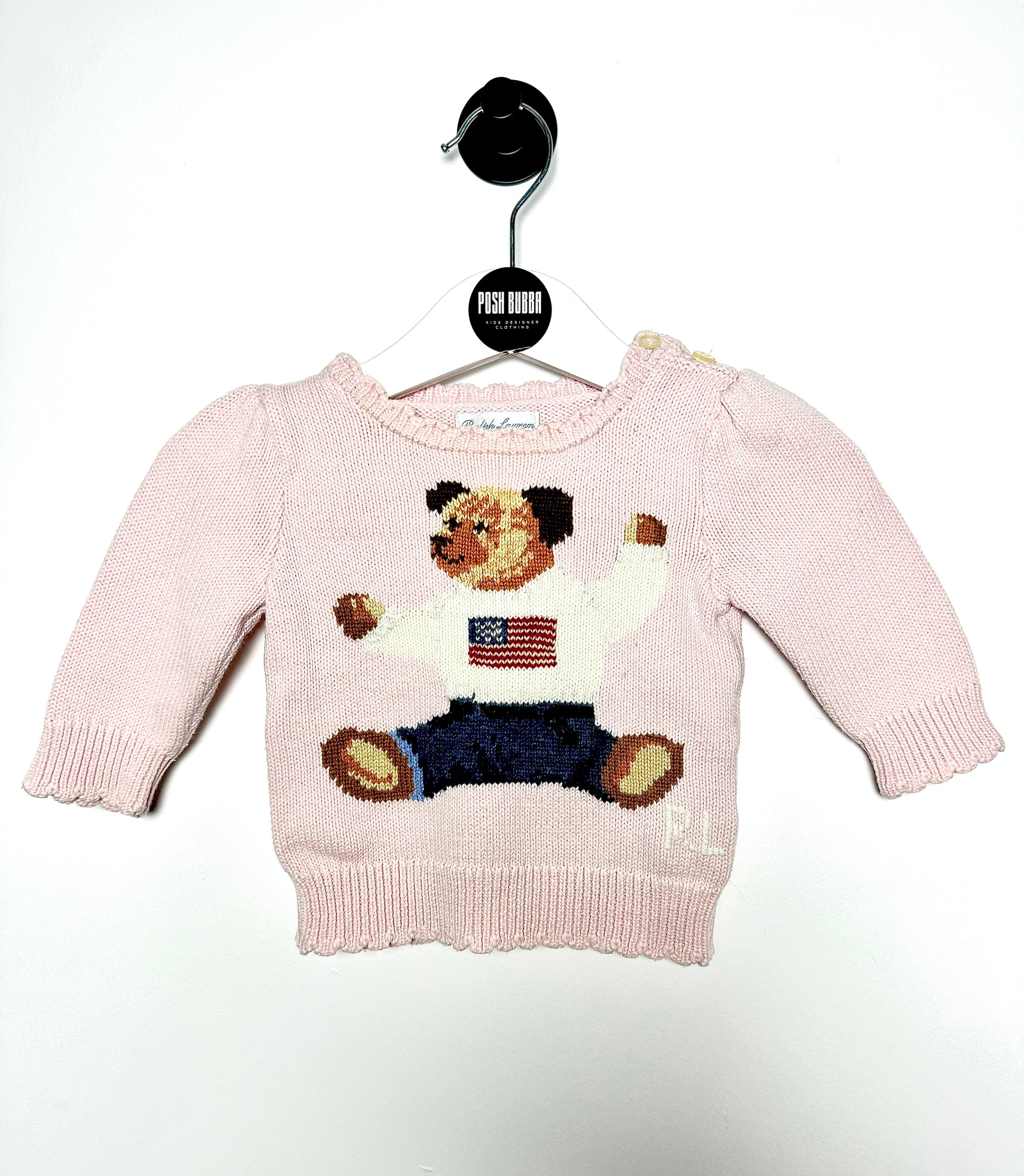 Ralph Lauren Baby Girl Jumper – 6 Months Crafted from premium materials, this Ralph Lauren polo bear jumper combines timeless design with everyday comfort for your little one. The iconic embroidered polo bear adds a touch of heritage charm, while the soft, breathable fabric ensures gentle wear against delicate skin. Perfect for layering or standalone wear, this 6-month size transitions seamlessly through seasons. A wardrobe essential that balances classic style with practical durability, ideal for both special occasions and casual playtime.