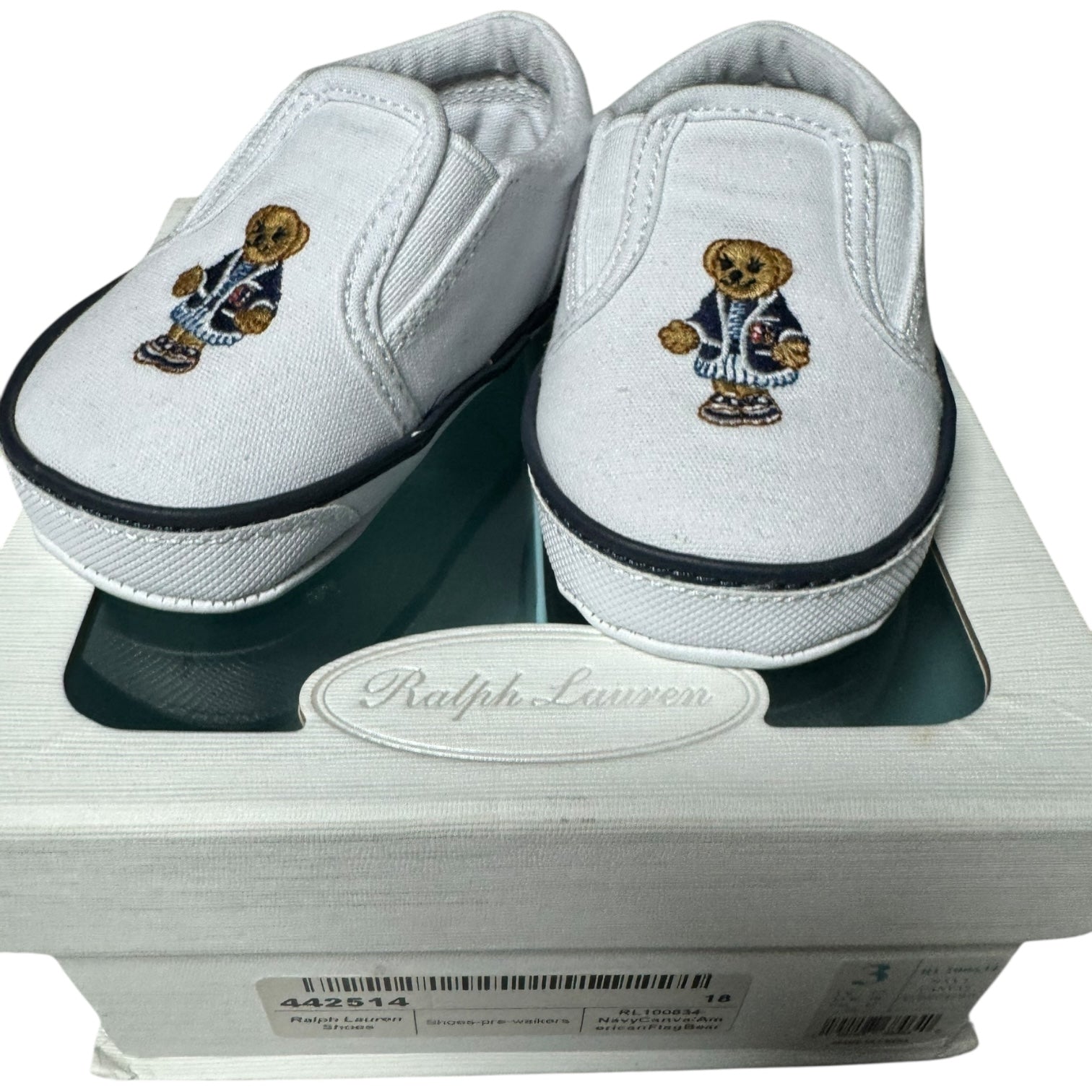 12cm These Ralph Lauren Baby Girl Shoes in EU18 feature the iconic Ralph Lauren polo bear design. Made with high-quality materials, these shoes offer both style and comfort for your little one. Elevate your baby's wardrobe with these cute and fashionable shoes.