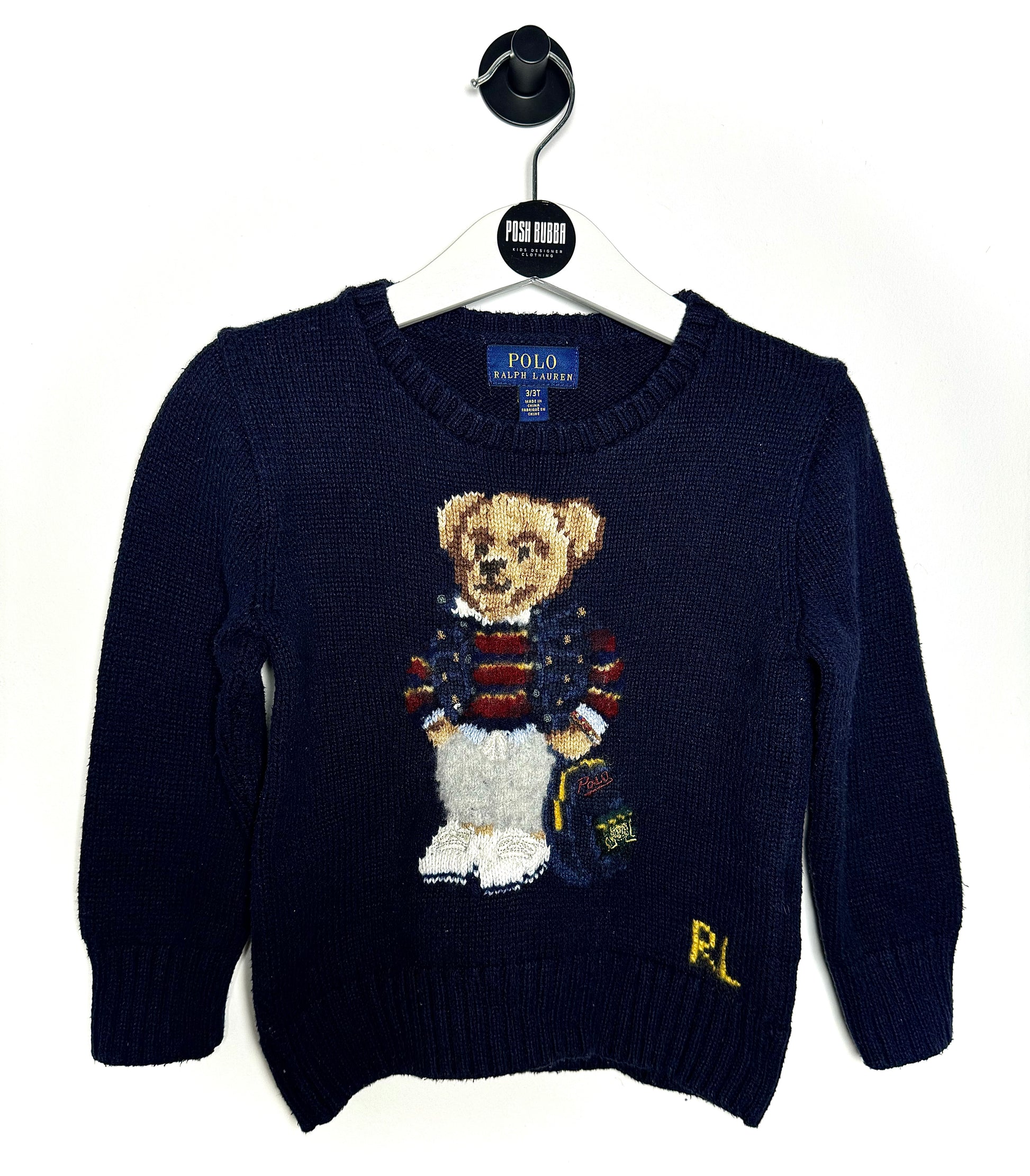 Very good condition Introducing the Ralph Lauren Knitted Jumper! Crafted with the iconic Ralph Lauren polo bear design, this jumper is both stylish and comfortable. Made with high-quality material, it's perfect for keeping your little one warm while they play. Available in size 3 years.