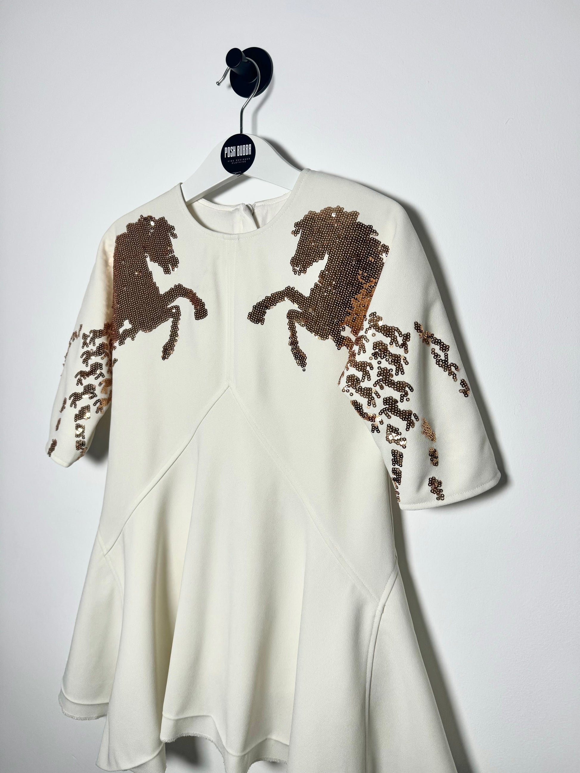 Excellent condition As an expert in the fashion industry, I introduce the beautiful Chloe sequinned dress for 4-year-olds. This stunning dress features intricate sequin detailing that will surely add a touch of glamour to your little one's wardrobe. Perfect for special occasions, this dress is both stylish and comfortable.