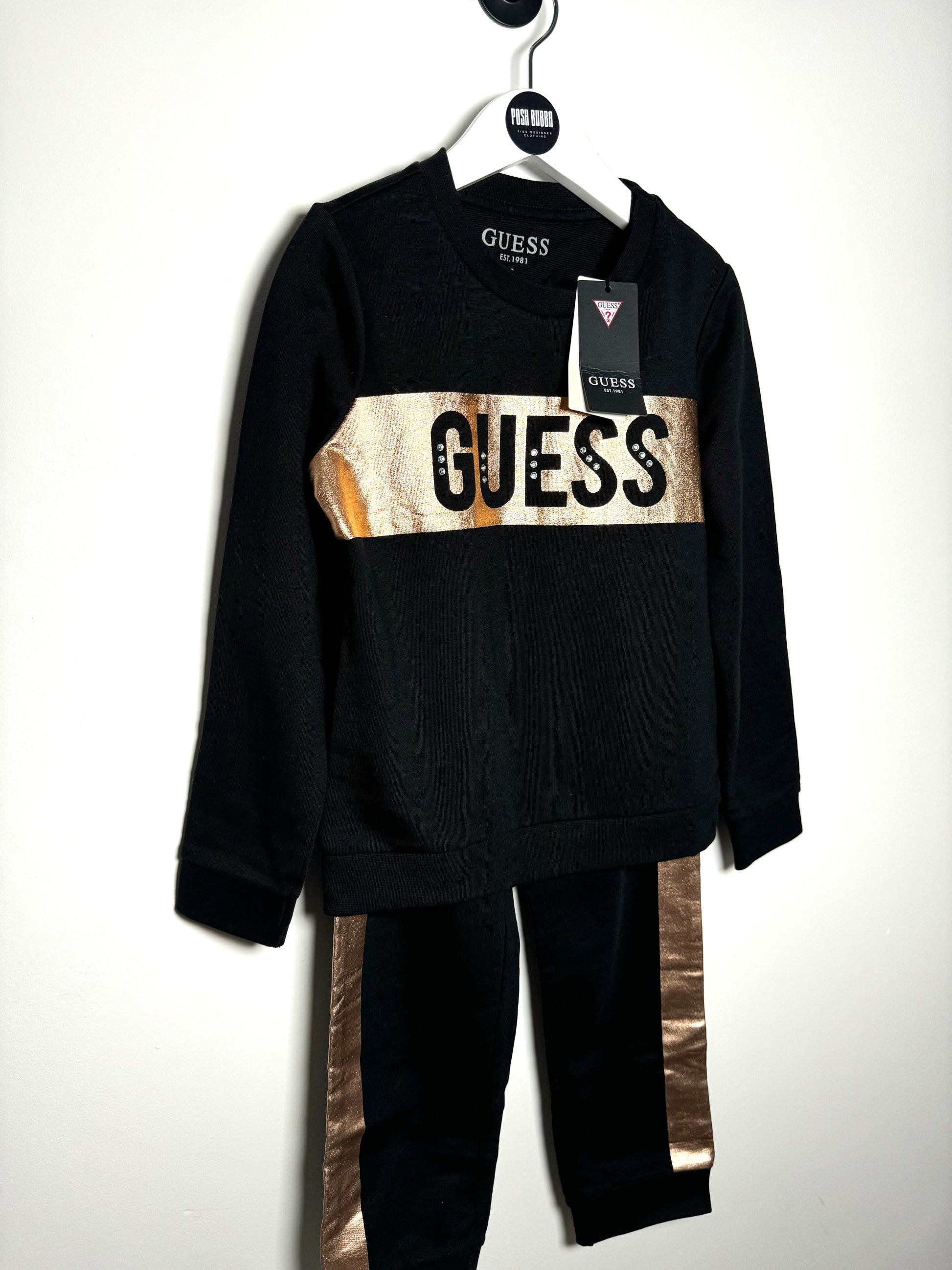 Introducing the Guess Girls Tracksuit - the perfect addition to your little one's wardrobe. Made with high-quality material, this black tracksuit from Guess is both stylish and comfortable. Perfect for everyday wear or a casual day out, your little girl will love the versatility and cool design of this tracksuit.