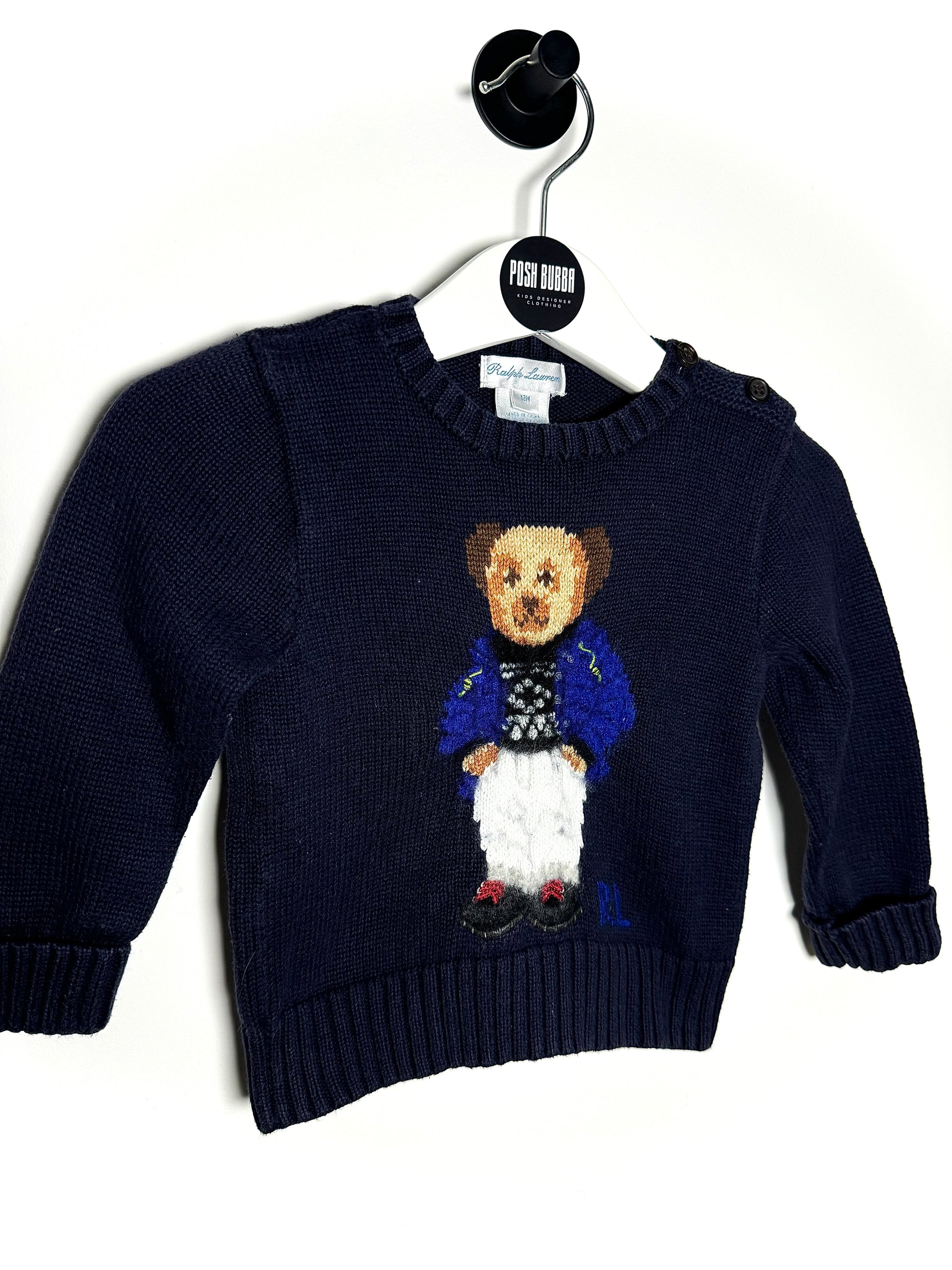 This Ralph Lauren Knitted Jumper is perfect for any stylish baby aged 9-12 months. Made with quality materials, this jumper offers comfort and warmth while also maintaining a sophisticated and fashionable look. A must-have addition to any little one's wardrobe.