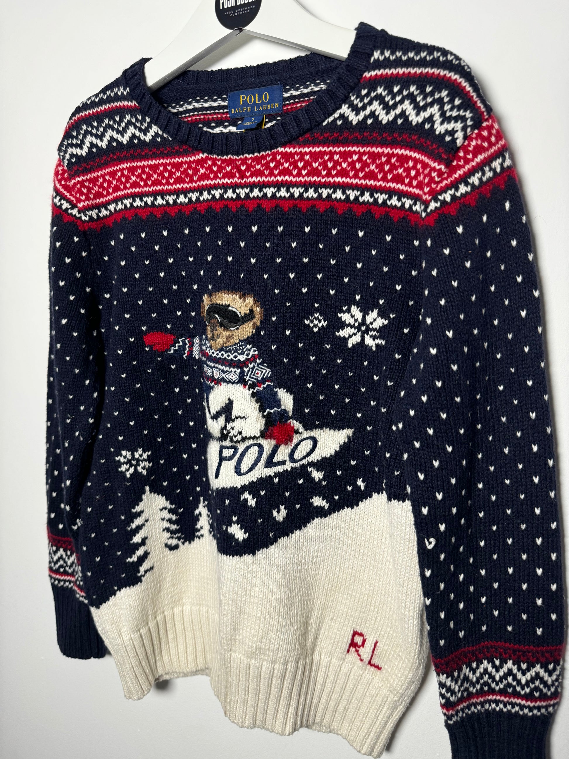 Excellent condition This Ralph Lauren knitted jumper features their iconic polo bear design. Made with expert craftsmanship, this jumper combines style and comfort for your child. The soft material and timeless design make it a perfect addition to any wardrobe. Invest in quality and iconic fashion with Ralph Lauren.